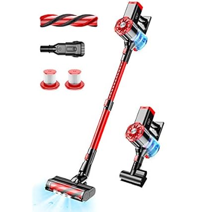Akku Staubsauger, 21000Pa Staubsauger Kabellos 4 in 1 Handstaubsauger Akkustaubsauger mit HEPA-Filter und LED Elektrobürste für Harte Böden Teppiche und Tierhaare Staubsauger Ohne Kabel