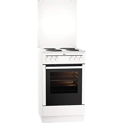 AEG 40095FA-WN Freistehender Elektroherd / 50 cm Standherd mit Massekochfeld und Backofen / 4 Schnellheizplatten / 57 l Heißluftofen/Schublade und Zierdeckel/Klasse A/weiß & schwarz