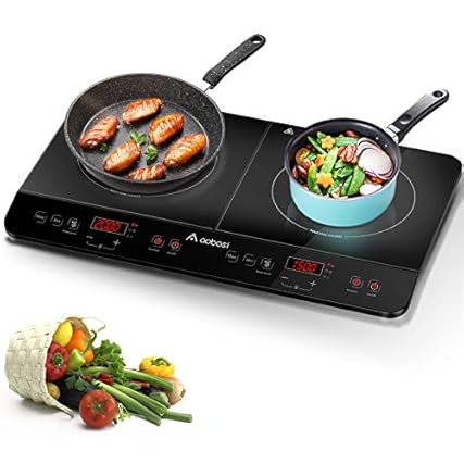 Aobosi Induktionskochplatte 2 platten,doppel Induktionskochfeld,Elektro Kochfeld tragbar,Sensor Touch Steuerung und Kristallglasplatte,4-Stunden Timer Funktion,3500W