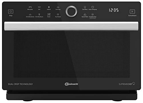 Haute Cuisine für Zuhause – die Supreme Chef 5in1 Multifunktionsmikrowelle. Dank dem präzisen Heißluftbacken, CrispFry-Funktion, XXL Grill, Dampfgarfunktion und Mikrowellen-Funktion mit Dual Emission System kochen Sie Zuhase von nun an wie ein Chefkoch. Backen sie auf den Punkt genau mit der Heißluft-Funktion: 5°C-Temperaturschritte sorgen für exakte Resultate. Dank der Crisp Fry Funktion bereiten Sie knusprige Köstlichkeiten zu, ohne Zugabe von zusätzlichem Öl. Die Heißluftfritteuse gehört damit der Vergangeheit an. Mit dem leistungsstarken XXL Grill können Sie leckeres Grillgut ganz fix gleichmäsig gegart zubereiten. Dank der Dampfgarfunktion und dem beiliegenden Dual-Dampfgarer wird gesunde Ernährung kinderleicht – Nährstoffe und Vitamine bleiben beim Garen optimal erhalten, was ideal für Gemüse, Fisch, Reis oder Pasta ist. Gesunde Gaumenfreude par excellence. Zusätzlich bietet Ihnen diese Mikrowelle weitere smarte Funktionen wie die Joghurt-Funktion, Schmelz- und Teig-Funktion und eine Brotauftau-Funktion.