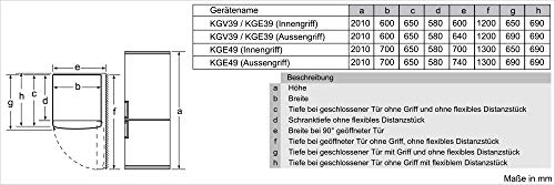 Bosch KGV39VLEA Freistehende Kühl-Gefrier-Kombination Serie | 4 / A++ / 201 cm hoch / 60 cm breit / Edelstahl / Kühl- und Gefrierschrank mit Abtauautomatik / LowFrost / VitaFresh / LED Lampe / EasyAccess Shelf / BigBox / VarioZone / SuperGefrieren / FreshSense / elektronische Temperaturregelung / Eierablage