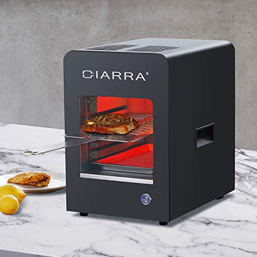 CIARRA Elektrische Tischgrill:CIARRA Elektro tischgrill kocht bei hohen Temperatur von 850 °C, ist eine neue Kochmethode. Es kocht rotes oder weißes Fleisch, Steaks, Fisch und Würstchen, Gemüse, Pizza und verschiedene Grillspezialitäten.