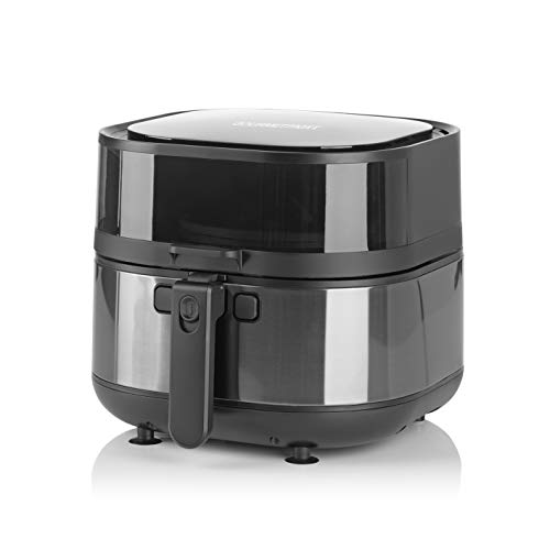 GOURTMETmaxx Digitale Design Heißluftfritteuse 7,2 Liter | Sichtfenster im Deckel, mit Grillplatte und Rotisserie, nahezu ohne Fett | Edelstahl Applikation [1800 Watt/Schwarz]