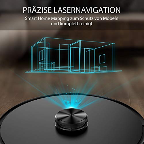 【Weiß, wo es ist und wohin es gehen soll:】: Das Upgrade 4.0-Lasernavigationssystemmit SLAM-Technologie navigiert und kartiert Ihr Haus intelligent, erstellt eine Echtzeitkarte Ihres Hauses und plant dann einen optimalen Reinigungspfad. Mit 24 Sensoren am Körper abgedeckt, kann es problemlos mit der komplexen Umgebung umgehen.