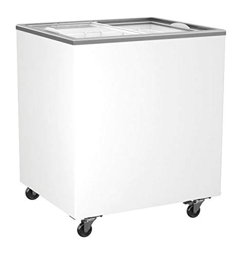 Tiefkühltruhe mit Glasschiebedeckel CHV210N Produktübersicht: Die Tiefkühltruhe CHV210N eignet sich hervorragend zur Lagerung von Tiefkühlprodukten. Hierbei lässt sich der Temperaturbereich, dank der leistungsstarken Kühlung, von -14°C bis-24°C einstellen. Durch die Öffnung von oben haben Sie stets den Überblick auf Ihre Lagerware und können schnell darauf zurückgreifen. Die Produktvorteile der Tiefkühltruhe mit Glasschiebedeckel CHV210N im Überblick: aussen hergestellt aus hochwertigen beschichteten Stahlblech statische Kühlung übersichtliche Bedienung mit Thermostat wirtschaftlich durch geringen Energieverbrauch Deckel abschließbar Gute Übersicht auf Produkte durch Glasschiebedeckel auf 4 Rollen gelagert, 2 davon mit Feststellbremse Kühlung und Isolierung: Temperaturbereich: -14°C bis -24°C Kältemittel: R 290 leistungsstarkes Kühlaggregat manuelle Abtauung Informationen zum Innenraum: mit Glasschiebedeckel Bruttorauminhalt: 208 Liter Nettorauminhalt: 170 Liter Produktdetails: Produktmaße (B x T x H): 763 x 653 x 919 mm Anschlusswerte: 230V, 50 Hz Gewicht: 45kg
