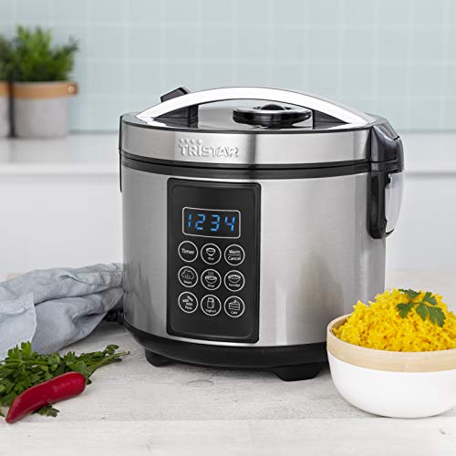 Haben Sie manchmal nur wenig Zeit, um ein gesundes Gericht für Ihre Familie auf den Tisch zu bringen? Dann ist der Tristar RK-6132 Digital-Reiskocher/Multicooker die perfekte Lösung für Sie. Mit diesem Reiskocher/Multicooker können Sie Reis stets perfekt zubereiten und auf vielfältige Weise kochen. Abgesehen von Reis können Sie auch Kuchen backen, Suppen kochen, Joghurt machen sowie Dämpfgerichte und andere köstliche Speisen zubereiten. So können Sie schnell und ohne viel Stress gesunde Speisen für Ihre Familie zubereiten.