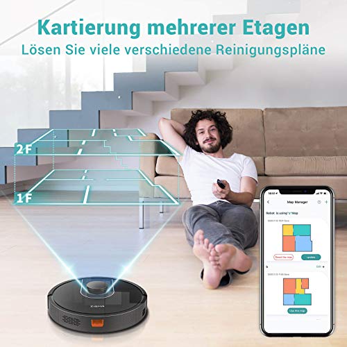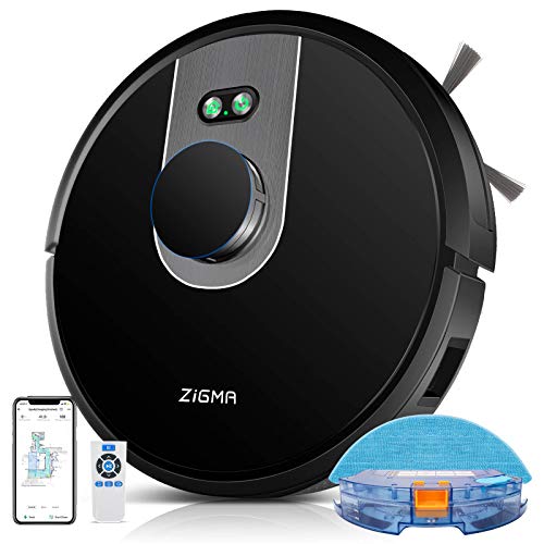 Zigma Saugroboter, Saugroboter mit Wischfunktion, 4000Pa Staubsauger Roboter mit intelligenter Navigation, APP- & Siri- & Alexa-Steuerung, 600ml Staubbehälter, 360ml Wassertank, für mehrere Etage