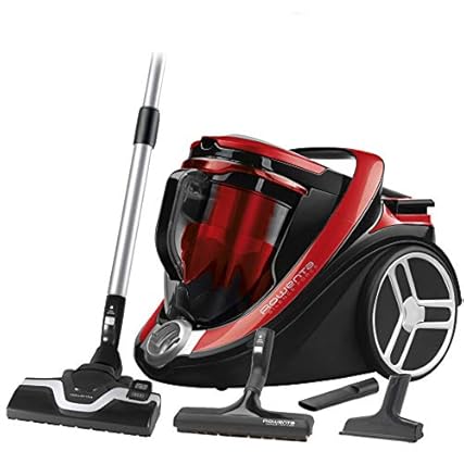 Rowenta Silence Force Cyclonic, Staubsauger beutellos, 550 Watt, leistungsstark, Vacuum-Cleaner, sehr leise 65 dB(A), 2,5L Staubvolumen, Tierhaar, Auto, Made in France, schwarz/rot, RO7649